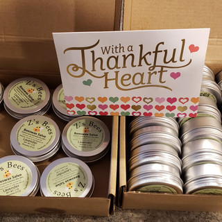 So we reached out to our Harmony church small bible study group to see if they would come alongside us and help with this adventure...Z's Bees wanted to donate 100 salves and asked if they help and purchase supplies for another 100 so we would have 200...well all families kicked in and we had enough to donate 350 TOTALš³ WOW!!!